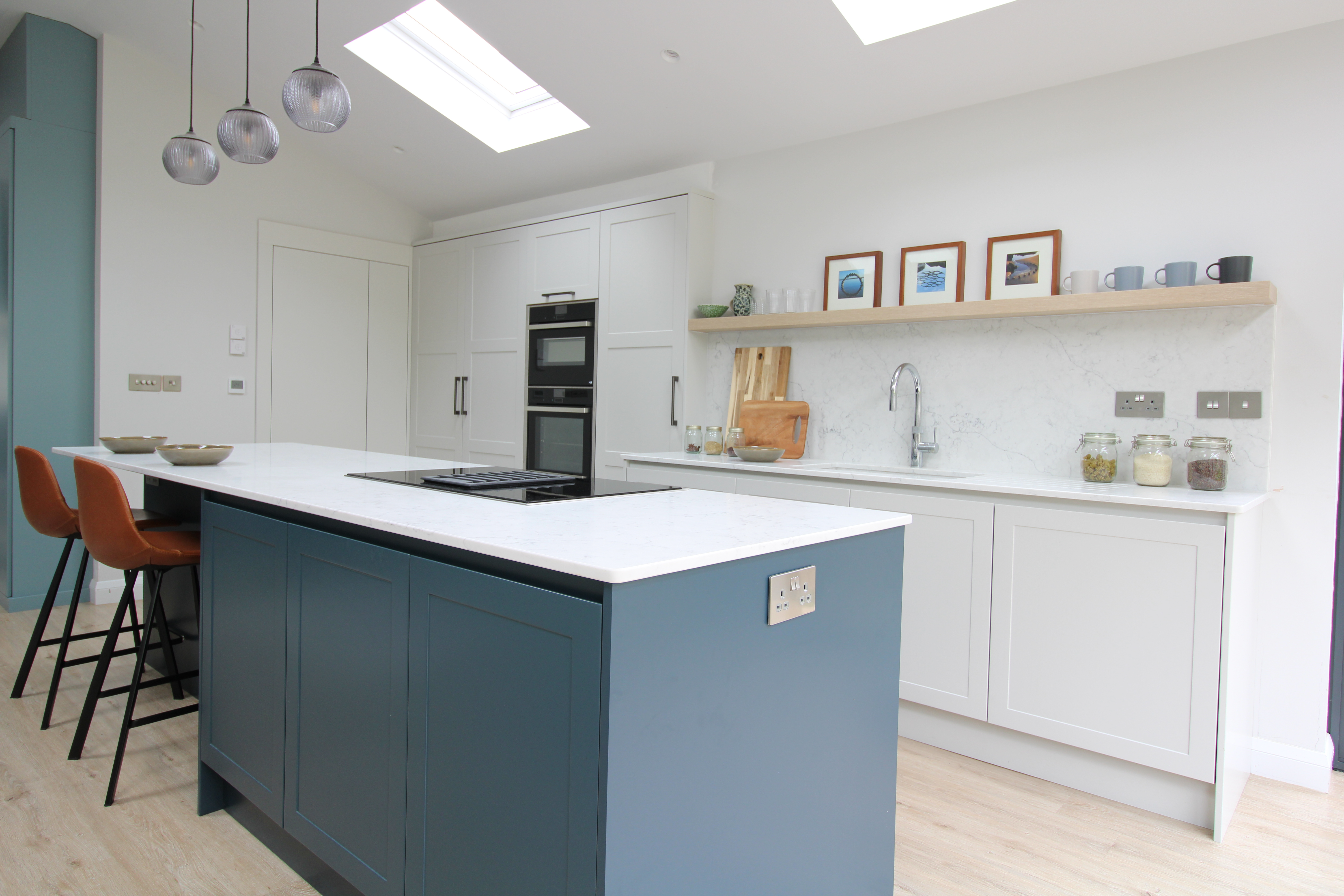 A full family home renovation in central Cambridge, this project created a cohesive and joyful home through a new kitchen diner, loft conversion and thoughtful remodelling throughout the original house. From the light-filled shaker kitchen to the cosy lounge and bespoke family study area, every space was designed to flow beautifully while supporting the rhythms of daily family life.