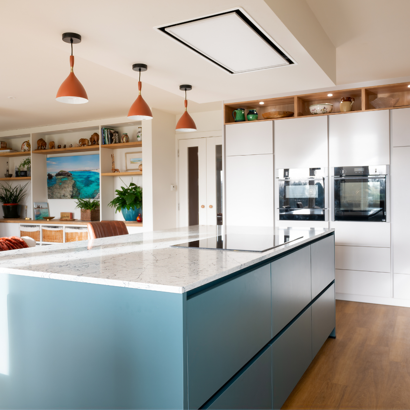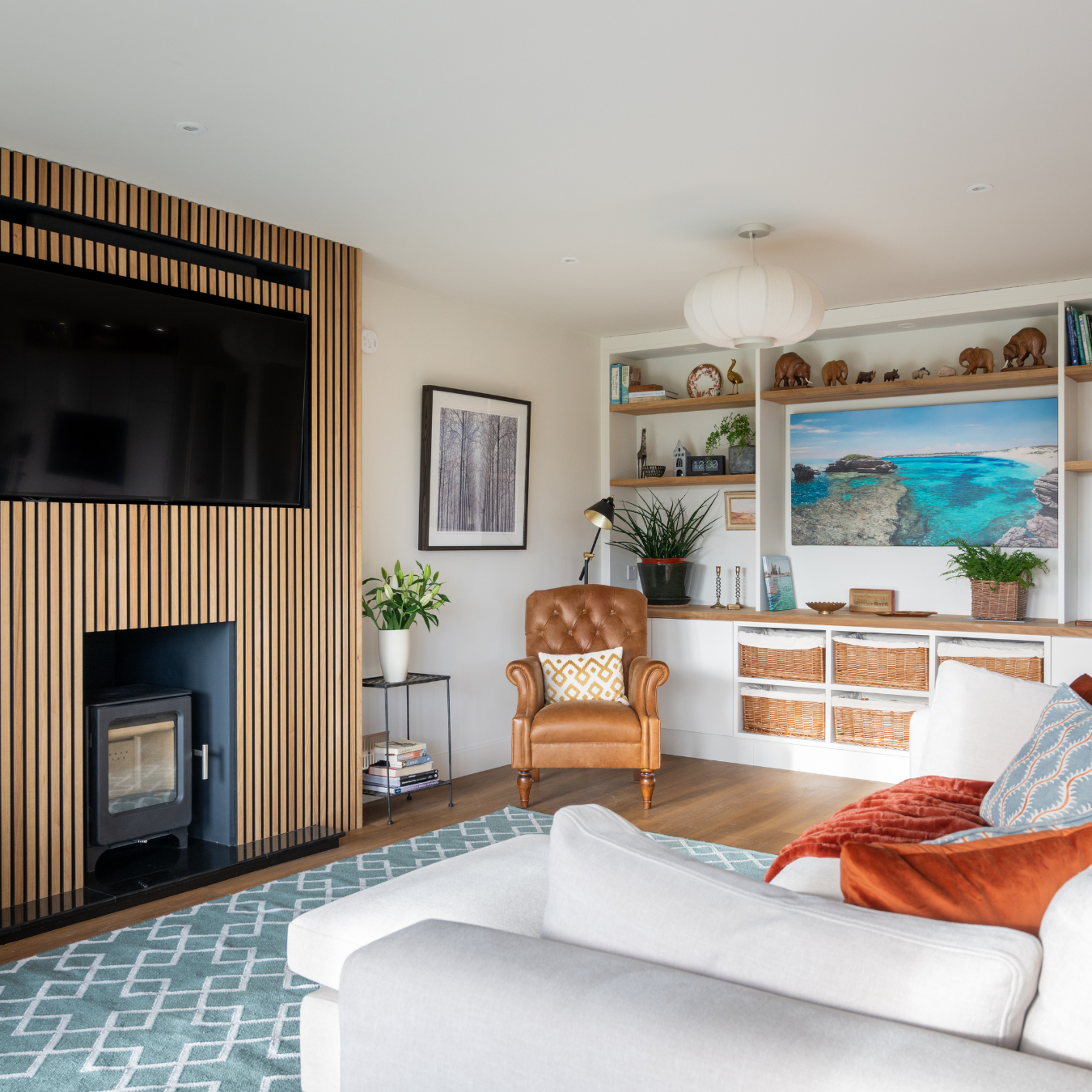 This Cambridgeshire home was reimagined as a modern open-plan space tailored for both relaxed family life and entertaining. By opening up the downstairs layout and introducing features such as wooden panelling and bespoke smart storage, the design achieves a clean, contemporary look while preserving warmth, character and everyday practicality.